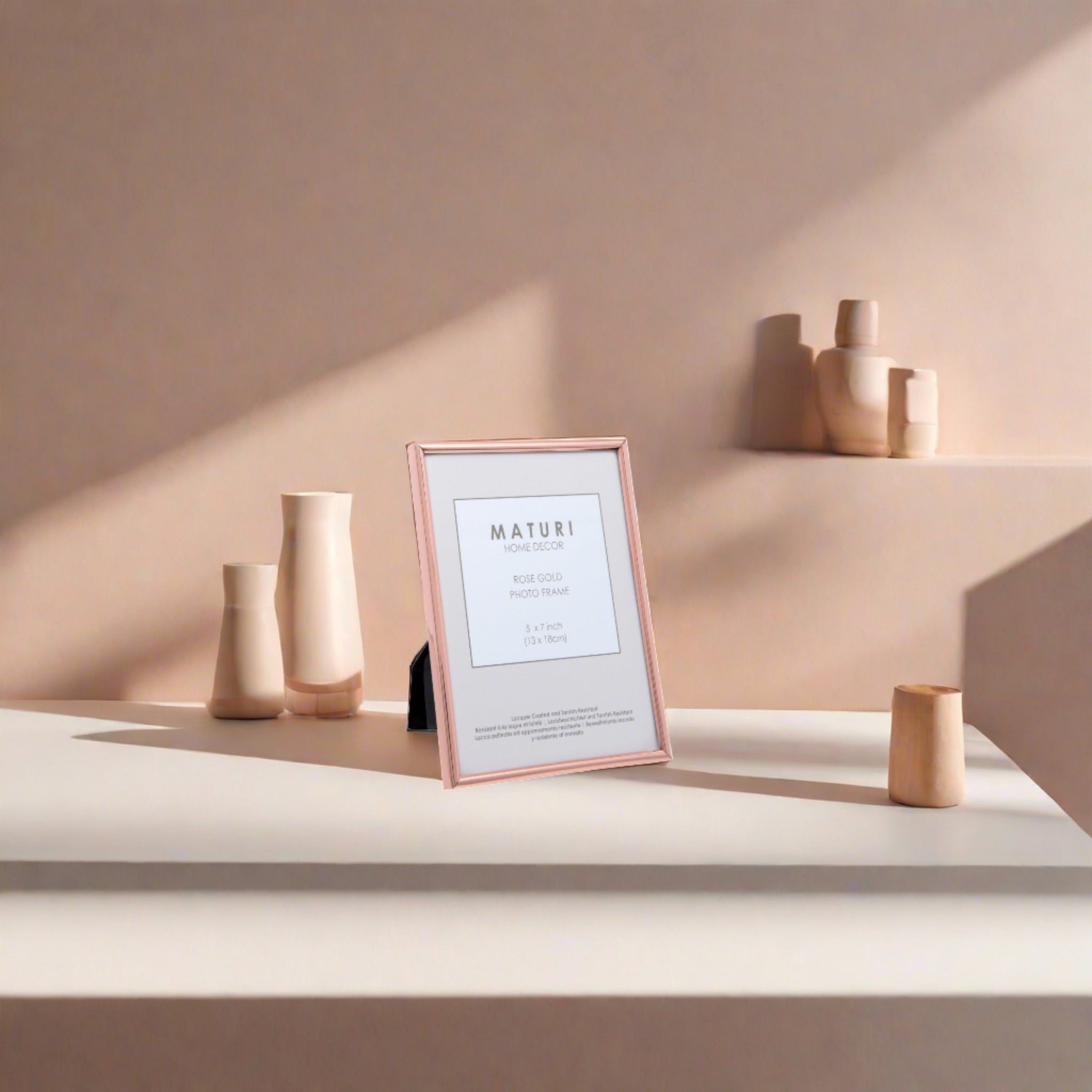 PREMIUM QUALITY: Maturi's Rose Gold Photo Frame is designed to make a lasting impression. Crafted with a polished finish and lacquer coating to prevent tarnishing, it's ideal for preserving your most cherished memories.