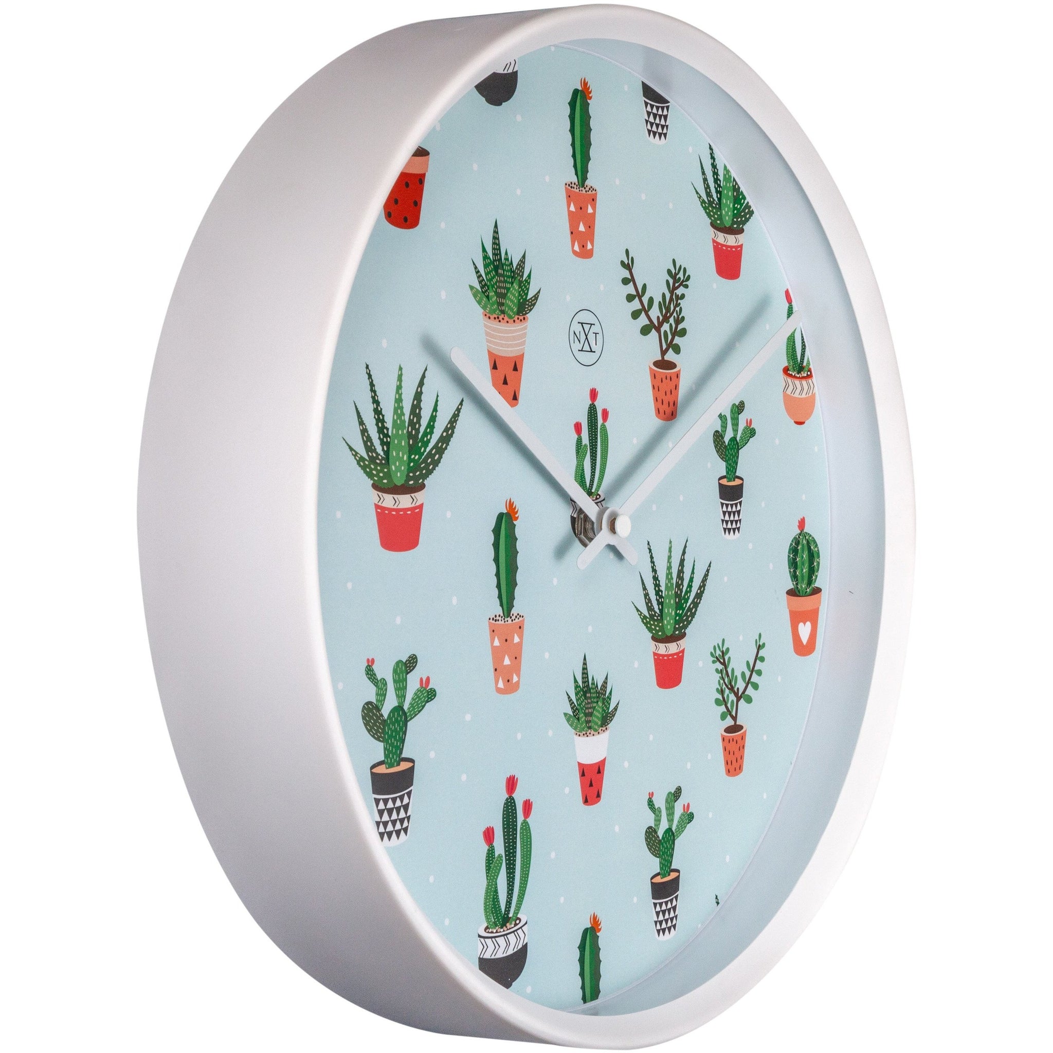 The nXt by NeXtime "Cactus" is a trendy round wall clock (ø30cm). The plastic clock has a dial with a funky cactus print, white case and white hands. This clock is silent and works on 1 AA battery (not included).