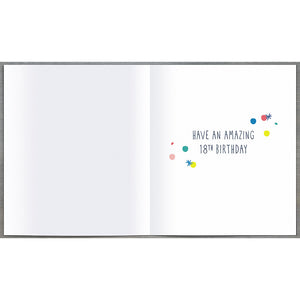 • Features an illustrated "18" on the outside and "Have an Amazing 18th Birthday" on the inside.