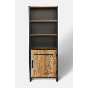 This statement tall bookcase offers ample storage with its four shelves, two which are hidden away behind a door. It would look great on its own or paired with other pieces from the Frais collection.