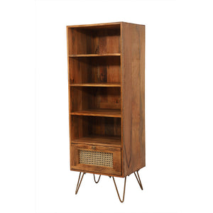 This shelved cabinet offers ample storage with its 4 shelves and spacious drawer. Golden hairpin legs and matching pull handles complete the look. The piece would look great on its own or paired with other pieces from the Rattan collection.