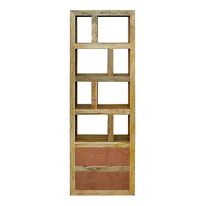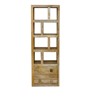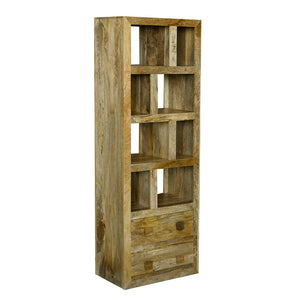This statement tall bookcase offers ample storage with its four shelves and two drawers. It would look great on its own or paired with other pieces from the Yoga collection.