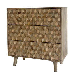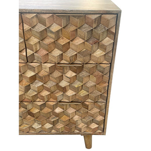The Geometric Collection is a designer led range which features a 3D cube pattern. Each piece is hand carved to produce an intricate finish - making each item unique. This collection is produced from solid mango, which is sourced from responsibly managed forests.