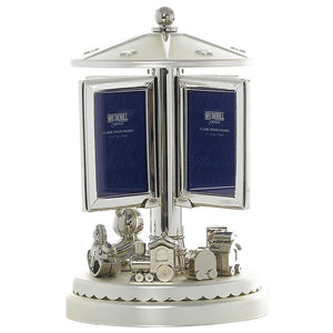 Capture precious memories and add a touch of enchantment to your child's room with the Teddy Revolving Photo Frame! This stunning frame holds up to 8 photos and plays a charming tune as it rotates, creating a mesmerising display. With small models of beloved teddies, ducks, and more on its base, this frame brings a sense of nostalgia and whimsy to any nursery. Say goodbye to constantly changing batteries - this frame operates without them, making it a hassle-free gift for a Christening or newborn.