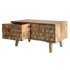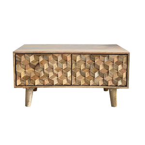 The Geometric Collection is a designer led range which features a 3D cube pattern. Each piece is hand carved to produce an intricate finish - making each item unique. This collection is produced from solid mango, which is sourced from responsibly managed forests.
