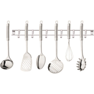 The EXQUISITE series includes all essential kitchen tools, available individually or in a practical 7-piece bundle. Made from partially satin-finished stainless steel, these cooking and baking utensils are always within reach thanks to the hanging rail, included.