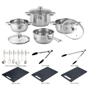 Belm Stainless Steel Cookware, Utensil & Accessories Set - 16 Piece