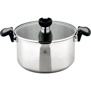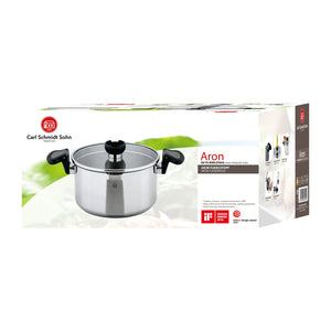 This Red Dot and IF design award winning cookware solves a simple problem with ease. Aron casserole dishes incorporate phenolic swivel and lock handles that secure the stylish glass lid in place when straining. The lid handle is also cleverly designed to be used as a utensil holder. The Aron range incorporates an encapsulated aluminium base for fast and even heat distribution making this pan state of the art.