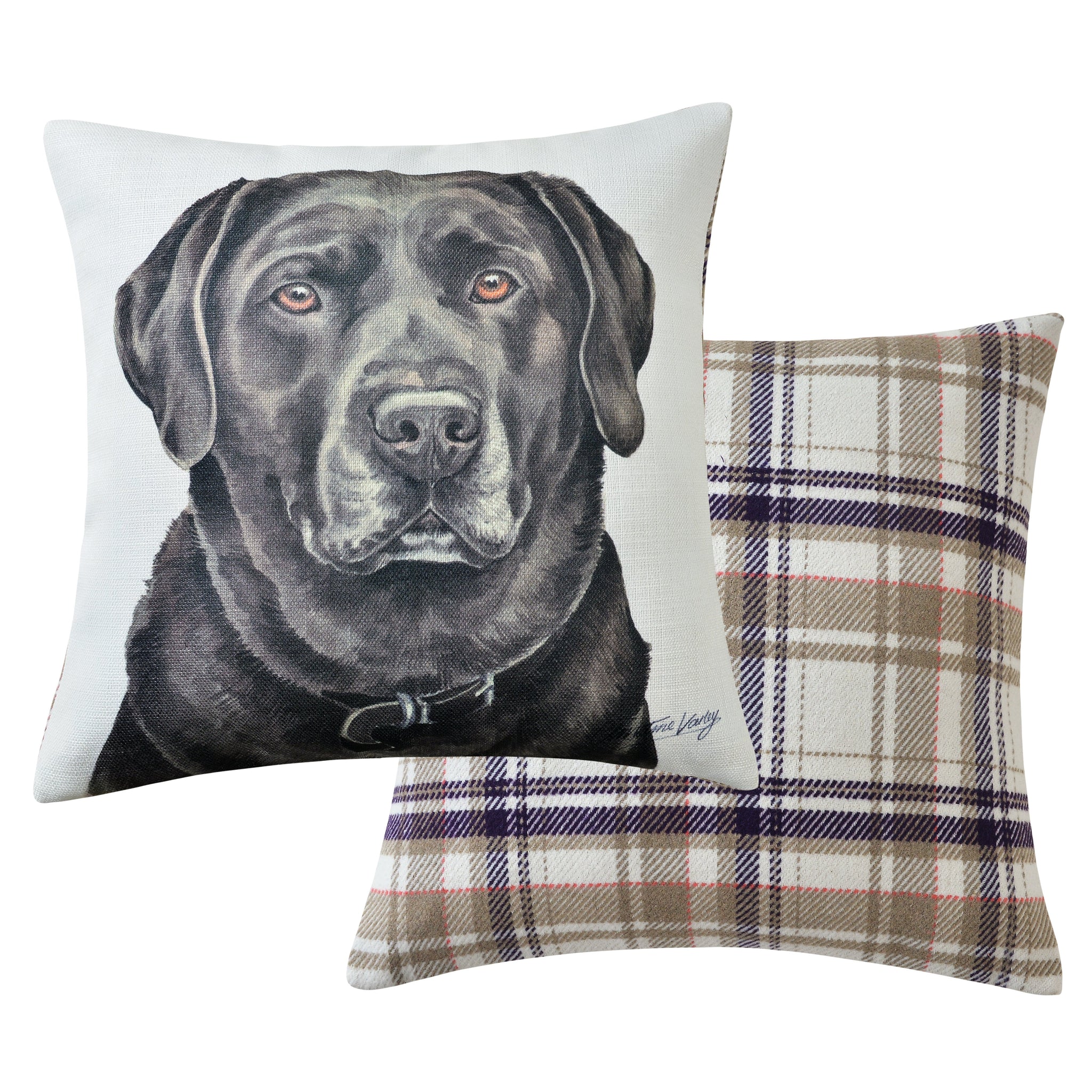 Beautifully soft to touch, our woven 43 x 43cm filled cushion, which is made from 100% Polyester, is the perfect item for any dog lover! With a single zip, the throw pillow is a practical and washable item. The back is a soft cream, brown and purple check, which naturally complements and enhances any home.