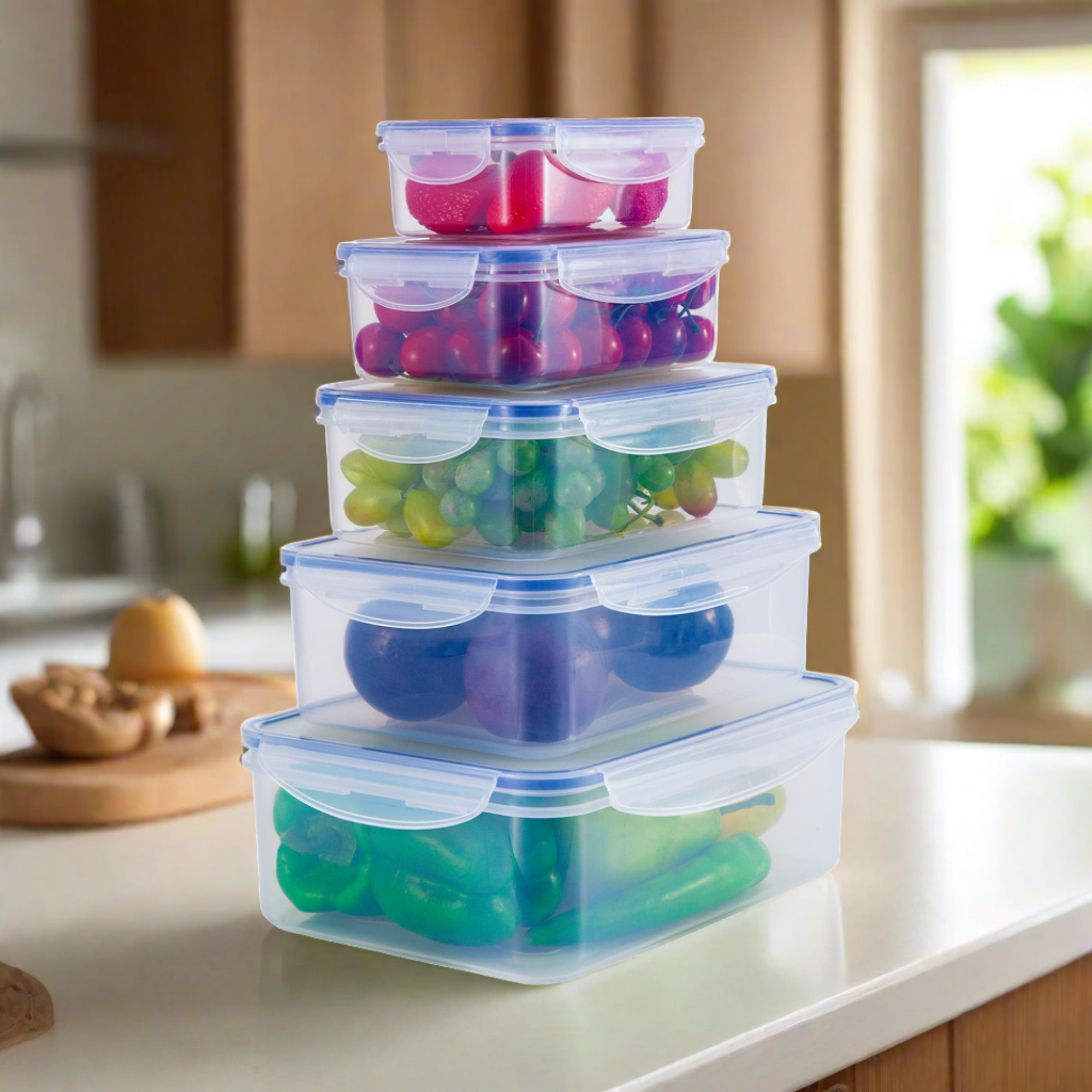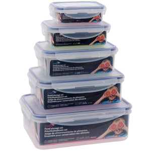 A set of five food storage containers which are perfect for storing last night's leftovers or keeping your lunch safe in your bag.