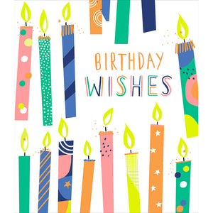 • Features an illustrated "Birthday Wishes" and candles with gold foil detailing on the front