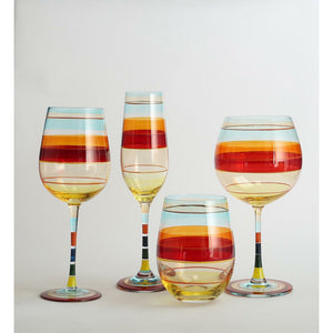 UNIQUE DESIGN - The glass is adorned with an array of bold stripes in orange, blue, red and yellow hues.