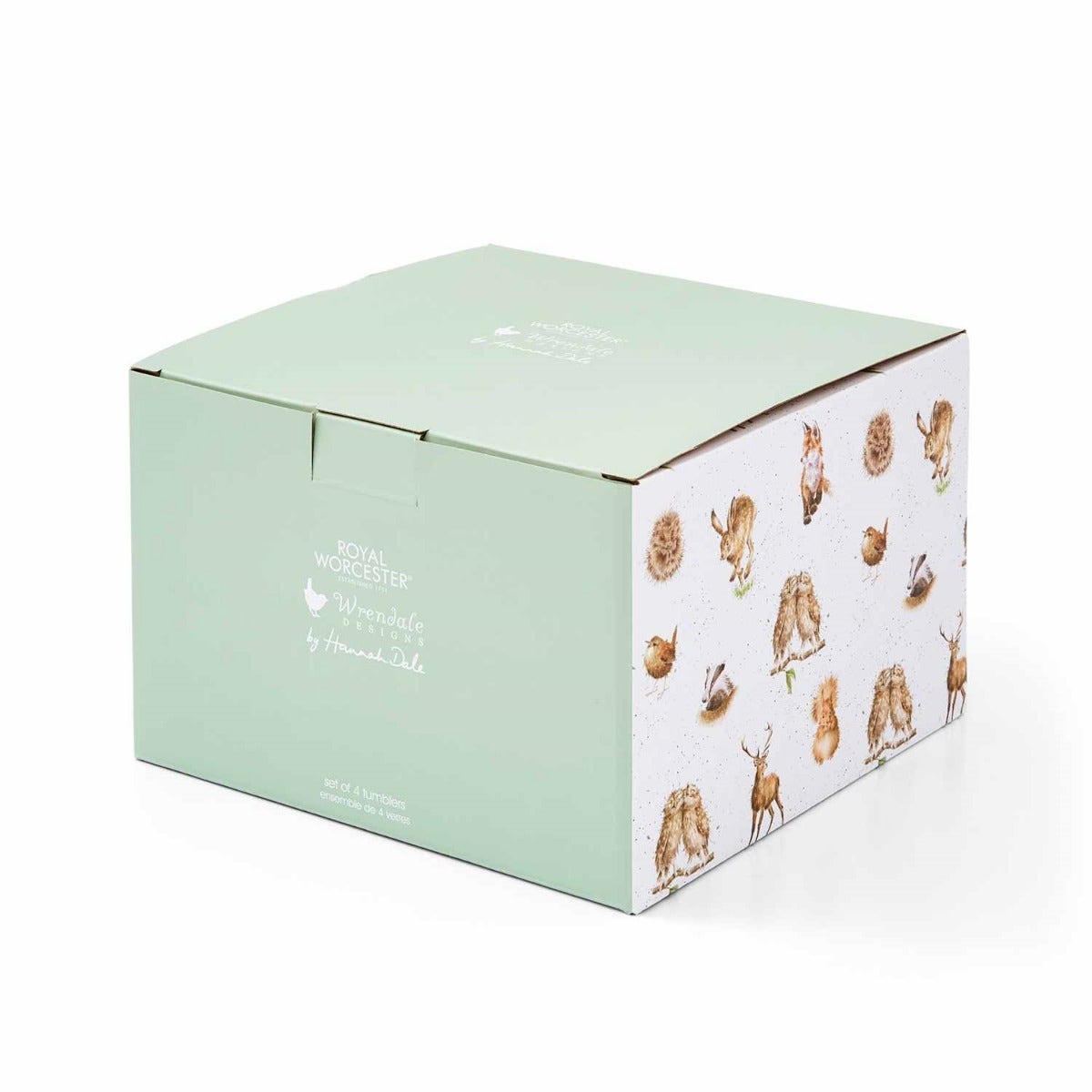 Serve up water or juice to family and friends in these adorable glass tumblers. These glasses come as a set of four and feature four different furry friends, originally designed in watercolour by Hannah Dale. With a curved shape, each glass not only looks great, but is comfortable to hold to. Match with other pieces in the Wrendale Designs collection for a delightful table setting. Ideal for everyday use, as well as special occasions with family and friends.