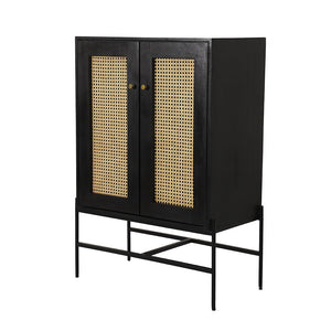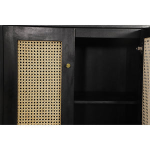 This 2 door sideboard offers ample storage with its shelved compartments. Black industrial style legs and gold pull handles complete the look. The top is perfect to display decorative pieces and would look great on its own or paired with other pieces from the Rattan collection.