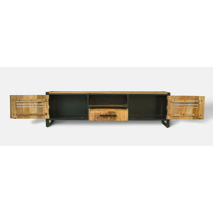 This large TV unit offers ample storage with its two door compartments, drawer and shelf. The top is perfect to display decorative pieces or a TV and would look great on its own or paired with other pieces from the Frais collection.