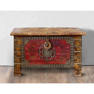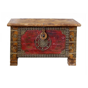 Handmade in India from solid mango wood and features vintage style metal detailing.