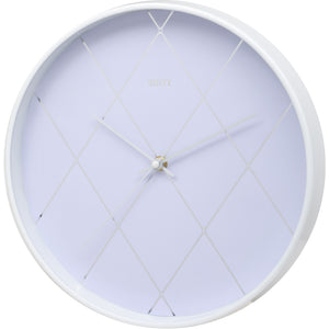 With its Silver diamond effect face and matching white hands and case, the modern and understated design will fit perfectly in any room of the house. The clear lens and 30 cm / 12" diameter allows the time to be easily read from across a room.