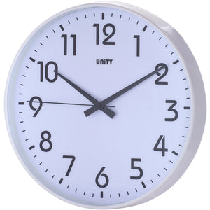 The Unity Fradley wall clock in white, features many benefits to enhance the home or office, such as its bold numbers, clear white dial and the sleek white case. Whilst this is a relatively standard sized clock at 30cm or 12-inch, when it's hung on the wall it shows the time clearly from a long distance. This clock sits perfectly flat to the wall and just needs a screw to secure it to the wall. This clock would sit happily in a kitchen or an office environment, where clarity of time keeping is a must.